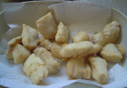 Se sala el pescado y se enharina. Se calienta el aceite, hasta que esté bien caliente, ya que si no es así se empapa el pescado.