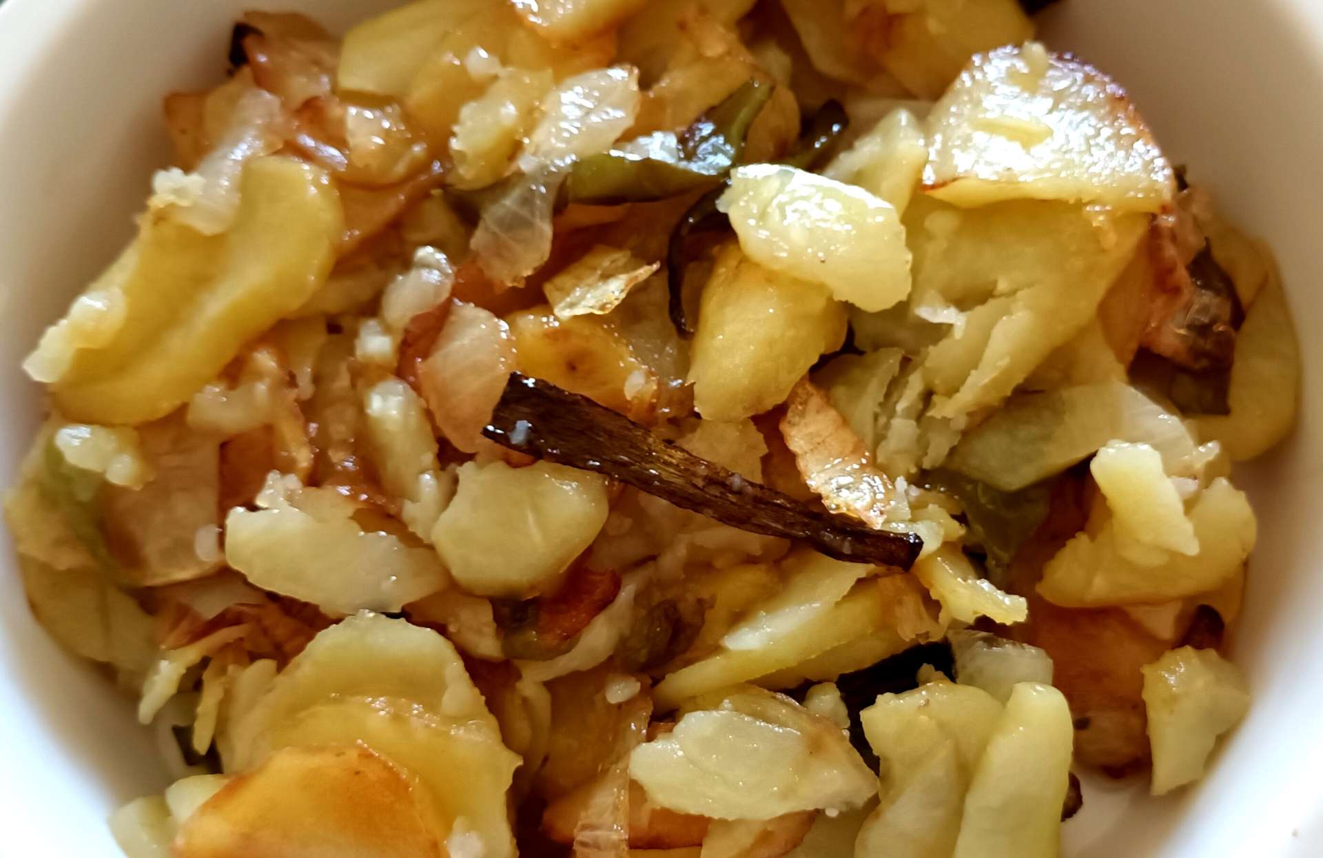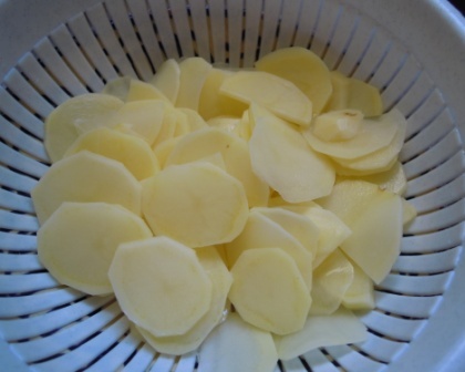 Como el aceite no está muy caliente no se fríen, sino que van quedando blanditas. Cuando notemos que la espumadera las corta fácilmente, es decir que ya están tiernas, se sacan escurriendo el aceite.