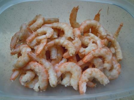 Se cuecen las gambas en agua con sal gorda, se pelan. Se guarda el caldo para aprovecharlo para un arroz.