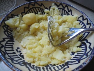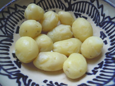 Se cuecen las patatas en agua con sal, hasta que pinchándolas se noten tiernas.