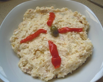 Por último la adornamos con lo que nos parezca mejor o tengamos a mano: aceitunas, pimientos morrones…