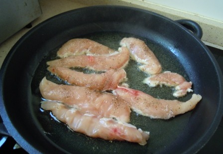 Se dejan macerar los solomillos con sal y pimienta negra molida. Se refríen.