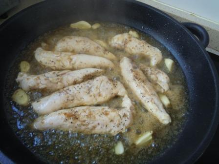 Se echa sobre el pollo en una olla o sartén y se deja hacer.Se acompaña de patatas panaderas ó patatas a lo pobre (véase el post correspondiente).