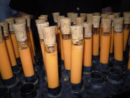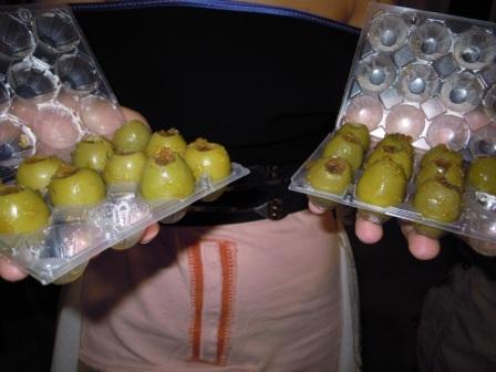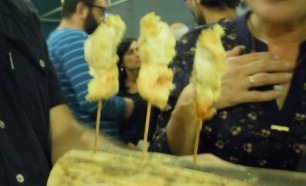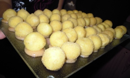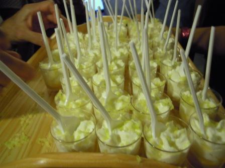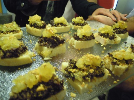 Todos los asistentes pudimos degustar una serie de tapas a cuál más buena, exquisitas algunas de ellas, y presentadas de forma muy original, como estas aceitunas rellenas en hueveras pequeñitasSalmorejo en «tubos de en ensayo»Magdalenas de sobrasadaBolitas de queso caramelizadasCanapés de morcilla con manzanas y kikosBrochetas de pollo y langostinosY para finalizar y dejarnos un sabor dulce en la boca, unos chupitos con nata buenísimosAntes de irnos nos regalaron un pequeño tarrito de dulce de membrillo, hecho por ellos también, y en un envase preciosoNi que decir tiene que, además de pasar un buen rato con los entrañables amigos «gastronómicos», fue una agradable noticia esta inauguración, no solo porque aporta un nuevo lugar para tomar café, tapear, degustar cositas buenas y originales en Cádiz, sino también porque alegra mucho ver cómo los alumnos de la magnífica Escuela de Hostelería gaditana, tan bien formados en todos los aspectos, son capaces de abrirse camino en este mundo tan agradecido pero, a la vez, tan exigente. Yo les deseo mucho éxito, como dejé escrito con tiza en la puerta de ese lugar al que todos acabamos yendo antes o después, el servicio, y que ellos mismos destinaron a ese fin. El servicio, por cierto, una monería…