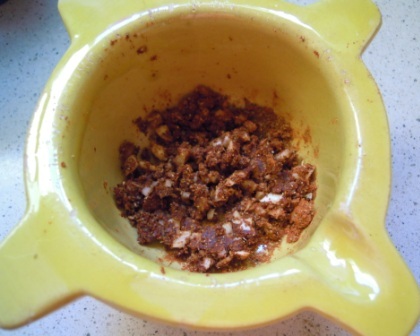 Se hace un majao con el ajo, el pimentón, el perejil y la especie.