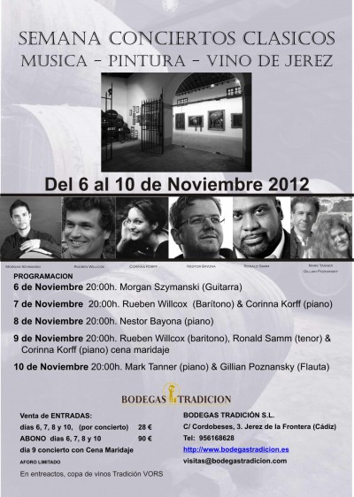 Pues las Bodegas Tradición han organizado un ciclo de Música Clásica. Aquí os dejo la información para el que esté interesado.