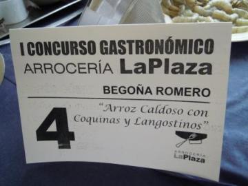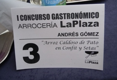El pasado domingo 21 asistí con un grupo de amigos «gastronómicos» al I Concurso de arroces caldosos, organizado por la arrocería La Plaza, en el hotel Vértice de Bormujos (Sevilla). El leit motiv para asistir fue, principalmente, que nuestra amiga Charo Barrios concursaba con un Arroz caldoso con langostinos y, ante tal acontecimiento, nos fuimos para allá sin dudarlo.