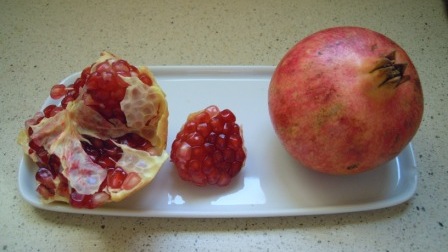 En estas fechas se toman muchos platos con productos de la temporada, castañas, boniatos…y granada. Las granadas que yo tengo en casa son cogidas directamente del árbol de la casa de un amigo, que me las ha regalado y están buenísimas, dulces, sin pepitas.