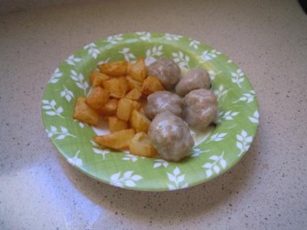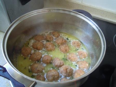 Después añadir un vaso de caldo y, cuando rompa a hervir, echar las albóndigas fritas.