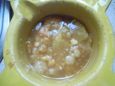 Se le añade el mortero un poco del caldo de verduras y se reserva.
