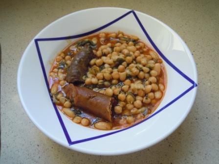 Ha llegado el frío, y ya empieza a apetecer un plato calentito, de los de cuchara. Le he llamado “básico” porque tiene lo mínimo que debe tener un potaje, alubias, garbanzos, chorizo y morcilla, y alguna verdurita. Qué menos…Pero bien condimentado y cocinado está riquísimo. No lleva ni tocino, ni carne de cerdo, para que engorde poco.