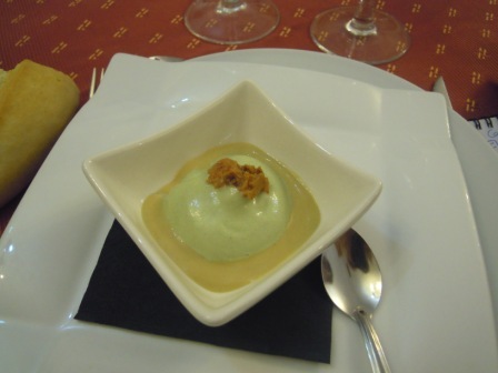 En primer lugar degustamos una deliciosa Espuma de lechuga de mar con boletus y erizos: