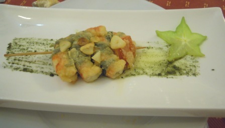 San fernando 132El aonori es otra alga comestible y muy sabrosa, que en este plato envuelve los langostinos