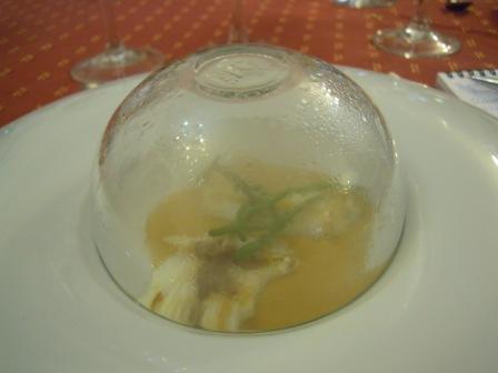 San fernando 133Robalo con crema de camarones, y tapado por una campana para guardar mejor el aroma