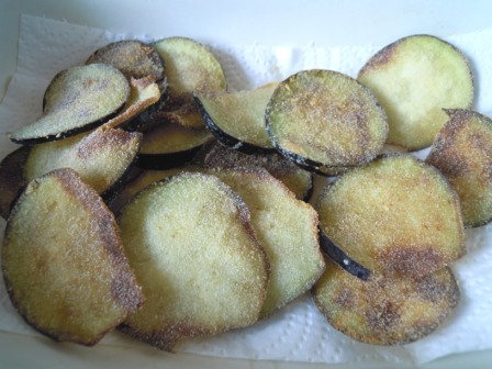 El secreto para que salgan crujientes me lo enseñaron en Córdoba, en un famoso y conocido restaurante cordobés. Hay que dejar cubiertas con leche las rodajas cortadas finitas, durante un buen rato, para que suelten la solanina que le da sabor amargo.