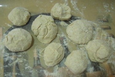 Transcurrido este tiempo dividimos la masa en porciones de entre 50 y 60 gr. Si queremos hacer los bagels de tamaño normal, dividimos la masa en porciones de 90 gr. aproximadamente.  Se divide en pequeños bolas lisas.
