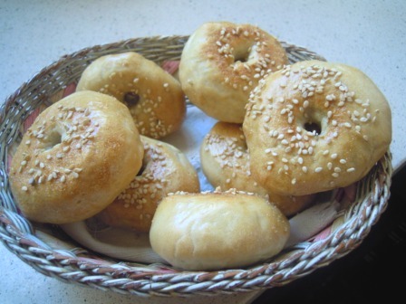 El bagel es  un panecillo redondo crujiente  con un agujero en medio hecho con sencillos ingredientes: harina de trigo, sal, agua, y levadura, para consumir casi de forma inmediata a su horneado. De origen polaco, cuenta una leyenda urbana que se produjo por primera vez para conmemorar la victoria del rey Jan Sobiesky de finales del siglo XVII sobre los invasores turcos.