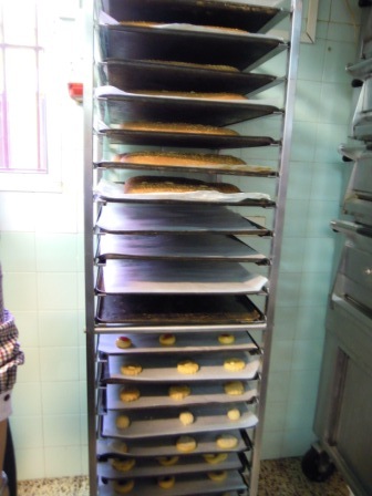 Bueno, pues como dije antes, la visita de ayer era, sobre todo, para enseñarnos los los productos de Cuaresma y Semana Santa. En los días previos a esta fiesta, las mujeres del pueblo iban hace años a la panadería de su familia a hornear sus rosquetas, pastas, panes…Era un acontecimiento que se repetía cada año, las amigas, vecinas, se reunían y charlaban mientras se horneaba lo que había hecho cada una. Y, de camino, cada una aportaba algo a la receta, «pues yo le echo matalauva», pues yo un poquito de ajonjolí»…Y así se iban enriqueciendo a la vez que se creaban sanas rivalidades, a ver quién lo había hecho mejor.