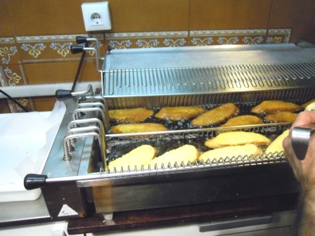 Me llamó la atención la limpieza de todos los mostradores, tablas, máquinas, bandejas, freidoras…todo estaba limpísimo. Los delantales, los gorros, las manos…todo limpio. A nosotros nos obligaron a lavarnos las manos también.