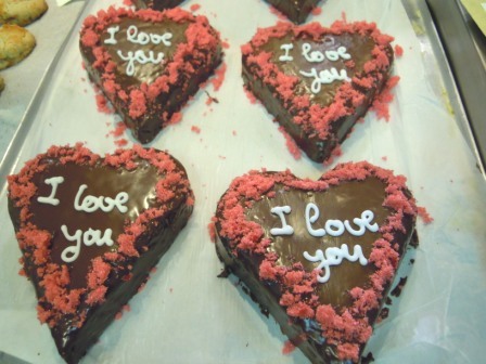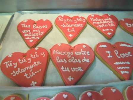 Y, por último, por la proximidad de San Valentín, han hecho galletas y bizcochos en forma de corazón, con frases alusivas a lo que se conmemora ese día.