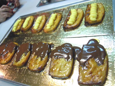 Y últimamente han innovado un tipo de torrija que no va frita sino al horno, con crema de vainilla y chocolate, que aún no han salido a la venta pero tuvimos la suerte de poder probar.