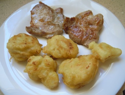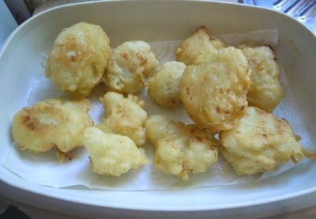 Estos ramitos de coliflor rebozados se pueden tomar solos, pero están muy bien como acompañamiento de carnes. Quedan blanditos por dentro y crujientes por fuera, riquísimos.