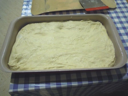Dejar reposar para que la masa coja cuerpo durante, al menos, 50 minutos. Como la masa es muy esponjosa resulta difícil darle forma si no se dispone de moldes adecuados. Se puede usar un molde de plum cake.