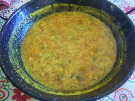 Se deja hacer hasta que el arroz esté hecho, pero que quede caldoso. Se va probando de sal, para que esté sabroso pero no salado.