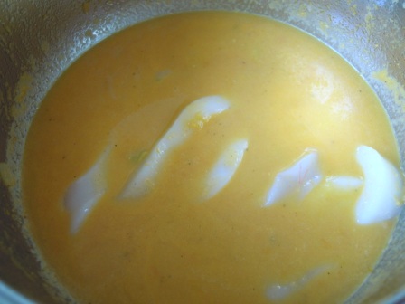 Se dejan cocer los calamares en la salsa del tomate y el caldo, hasta que ésta se espese.