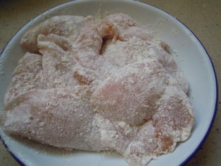 Enharinamos los trozos de pollo, los freimos y los colocamos en una olla exprés ó rápida.