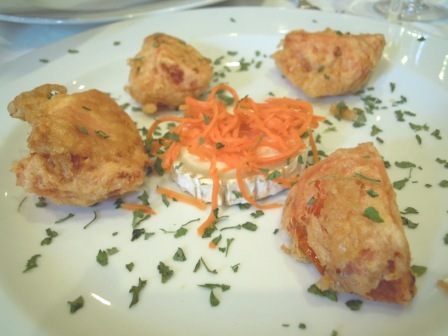 Tomate rebozado con queso de cabra: