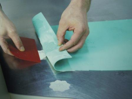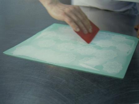 La pasta conseguida se extiende en los tapetes con una rasqueta, hasta que quede bien cubierta toda la superficie.