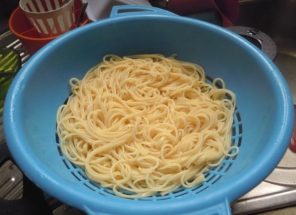 Se hierven los espaguetis y se escurren.