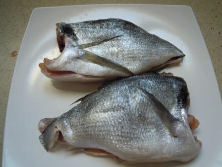 Se limpian las doradas y se les quita las cabezas y las espinas. Se separan ambos lados.