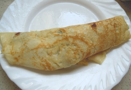 La sacamos con cuidado de no romperla en un plato. Así todas las crepes que nos salgan con la mezcla.