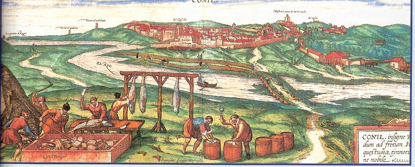 anforaLa arqueología ha corroborado lo que ya contaban las fuentes literarias sobre la enorme riqueza pesquera de las costas del Estrecho y que han perdurado a lo largo de la Historia. En un grabado del s.XVI se reproducen las almadrabas de Conil.
