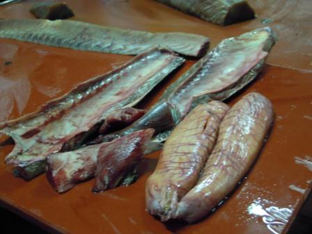 Herpac 021Herpac 042El atún se va despiezando empezando por las vísceras, se le saca las huevas. Luego el mormo y los morrillos.