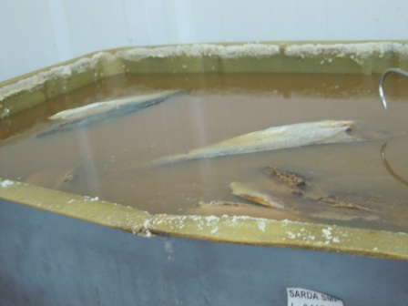 Herpac 050Herpac 069Después del despiece se lleva a cabo la salazón del pescado, en pilas que recuerdan a las piletas halladas en las factorías fenicio-púnicas y romanas, como las de Cádiz y Baelo Claudia.