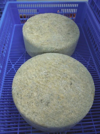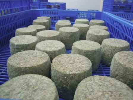 Pasamos a la sala de envasado, refrigerada, donde vemos algunos quesos con moho, normalmente se les quita el moho, ya que aún no estamos acostumbrados en nuestra zona a tomar queso con él, a pesar de tratarse del Penicilium, que es muy beneficioso para el ser humano. Poco a poco nos iremos acostumbrando a tomarlo.