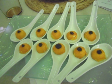Bombón de cuajada láctica El Bucarito (nuevo producto) con mango y tapenade