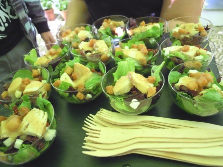 No se contentaron con darnos a probar sus quesos y embutidos, sino que nos fueron ofreciendo unas tapas a cuál más buena.Acompañadas de buenos vinos, tinto Chinchilla y blanco José Pariente.