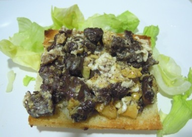 Tostamos el pan. Y colocamos encima el revuelto de morcilla. Muy buena y fácil de hacer.