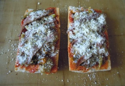 Los ingredientes pueden ser otros, depende de lo que tengamos, ya sabemos que las pizzas pueden ser de ingredientes muy variados. Yo tenía pimientos y berenjenas asadas, los pelé y corté,  y añadí anchoas.