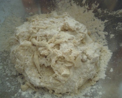 Incorporamos la levadura a la harina desmenuzándola con los dedos para que se integren bien. Incorporamos el resto de ingredientes durante 3-4 minutos hasta que formen una masa compacta. Deja reposar unos minutos.