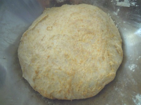 Recogemos las puntas hacia dentro y formamos una bola compacta que dejamos reposar en un bol aceitado ligeramente, tapada con un film transparente, durante unos 50 minutos (o hasta que doble su tamaño).