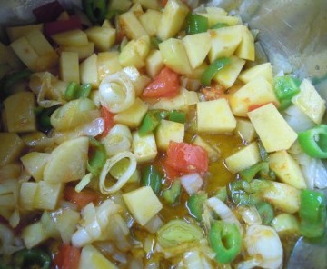 Mas 001Pelamos y cortamos en dados las patatas.