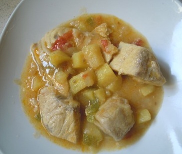 De vuelta ya de vacaciones, y bastante relajada y contenta, reanudo mi actividad bloguera que también ha estado de vacaciones. Y esta receta me parece estupenda para este inicio de la actividad, un guiso de pez de espada que está para chuperse los dedos.