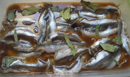 Los ponemos en un recipiente plano, mejor de cristal, no metálico, y los cubrimos con vinagre mezclado con trocitos de hojas de laurel.
