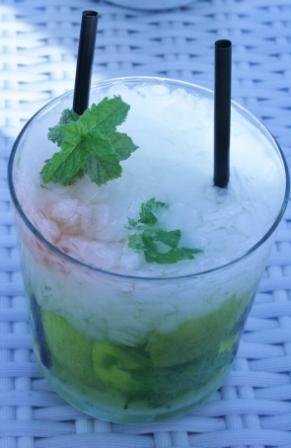 En esta terraza fue pasando el tiempo sin darnos cuenta, se estaba tan bien, tan a gusto que no nos decidíamos a irnos, por lo que fuimos invitados a una nueva degustación, un mojito. Ya nos habían comentado que los hacen estupendos, que tienen fama, y ahora podemos decir con fundamento que dicha afirmación es cierta.