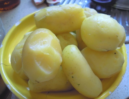 Para hacer la ensaladilla ponemos en un cuenco patatas cocidas, atún en aceite, trocitos de huevo duro y aceitunas negras cortadas en trocitos también.